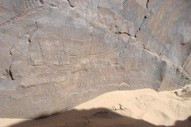Rothe (2008) describes this wadi as being an Old Kingdom route from Baramiya to Wadi Dunqash, and part of a Greco-Roman road from Qena to the Roman station at Bir Samut. In the EDS publication (Rohl, 2000) the wadi has only two sites but both have a profusion of petroglyphs. HAJ(S)-1with three 'arms raised' figures clearly has predynastic components, and there are also two boats being dragged. One of these has stick figures dragging both ends, a very unusual feature in the rock-art. HAJ (S)-2 has a 'frond' boat. Photos 12-16 are courtesy of Cheryl Hanson and come from one of the later EDS expeditions which concentrated on the Kom Ombo Drainage Basin. Thus it is clear that actually there are not just two sites in this wadi. Publication and further surveying is needed.